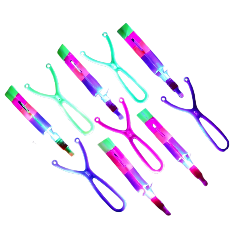 Simply pull back, let go, and enjoy the spectacle. This slingshot-style launcher propels the glowing flyer upwards, where it spirals down in vibrant, colorful arcs. No need for batteries or setup—only pure, immediate enjoyment in moments.