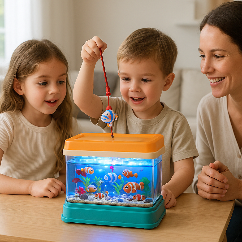 Immerse yourself in a sea of exploration with Aquablast, a captivating and educational musical fishing aquarium crafted to inspire curiosity and joy in your little ones, while promoting their patience, focus, and appreciation for science through delightful, music-infused fishing experiences!