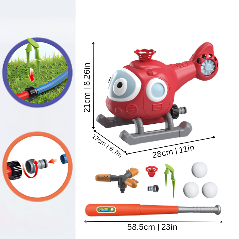 My toddler really liked the helicopter design and found it fun. Probably more suited to a slightly older child but she enjoyed nonetheless. Works well when attached to hose and is a fun outside toy.