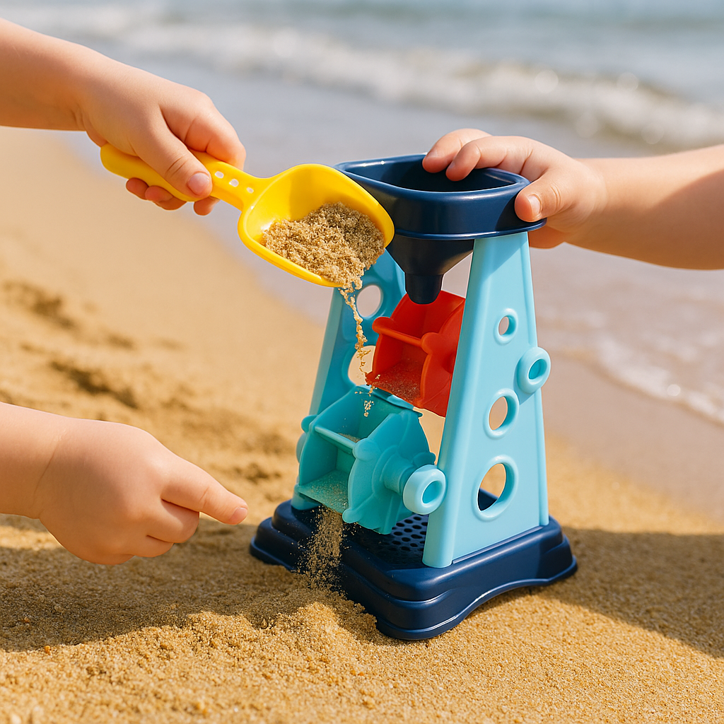 From filling a bucket with sand to observing water spin through the bright wheel, there’s always a fresh discovery waiting. This set comes with shovels, molds, a sailboat, and a spinner that adds a touch of enchantment to every action. Be it building castles or splashing in puddles, little hands remain engaged and inquisitive.