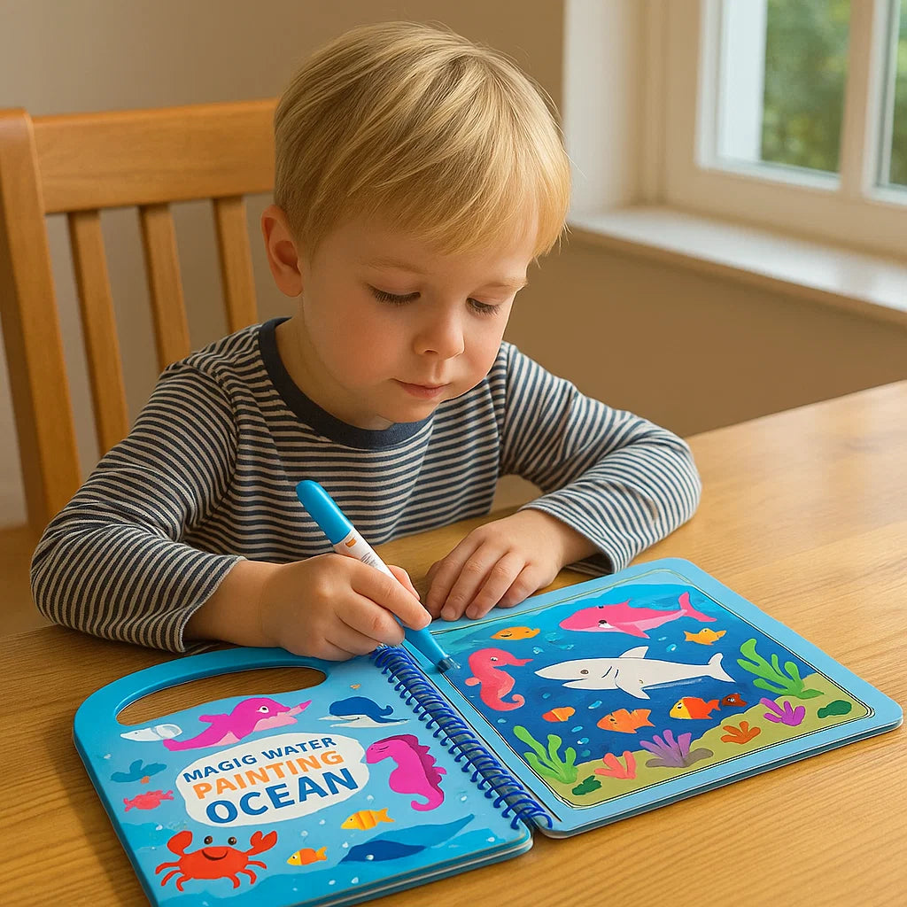 Aquillo is made using premium, toddler-safe materials, making it secure, long-lasting, and well-suited for tiny hands. The sturdy, flexible pages are designed to endure the enthusiastic attempts of emerging artists, providing opportunities for repeated use. Whenever the pages dry, they revert to their pristine condition, ready to showcase your child's latest creative ideas.