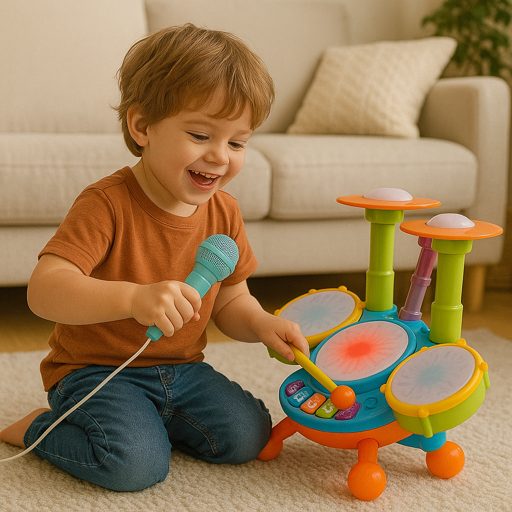 Each hit, beat, and melody supports your child's educational journey without their conscious awareness. The captivating design fosters coordination, focus, and early cognitive growth through fun activities. As they sing into the microphone or drum along to the beats, they inherently build confidence and unique self-expression.