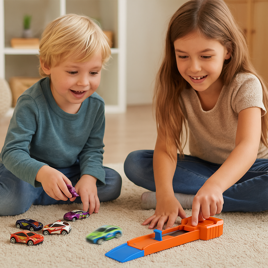 Who claims that fun must be complex? Simply set it up, launch it, and observe as the excitement unfolds. Whether competing against friends or trying out new tricks alone, this launcher ensures the fun never stops. Constructed to withstand numerous crashes, it’s durable, secure, and geared for countless rounds of friendly rivalry. No batteries needed. No screens involved. Just unadulterated racing excitement that's tangible for kids.
