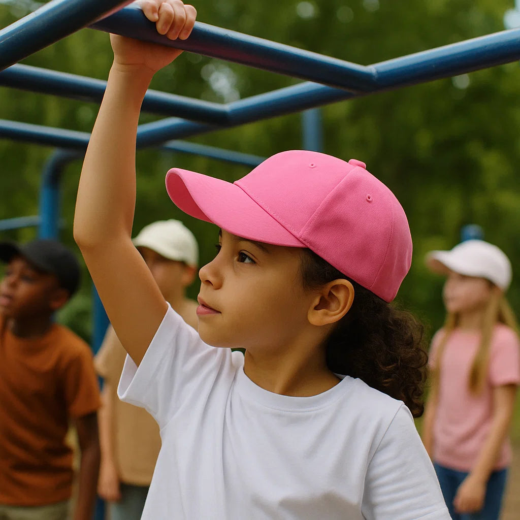 Crafted from airy cotton and soft polyester, it's designed for lasting comfort. The fit is secure yet gentle, allowing for carefree play without constant adjustments. Whether they're having fun outside or relaxing at school, this cap stays in place and looks great while doing so.