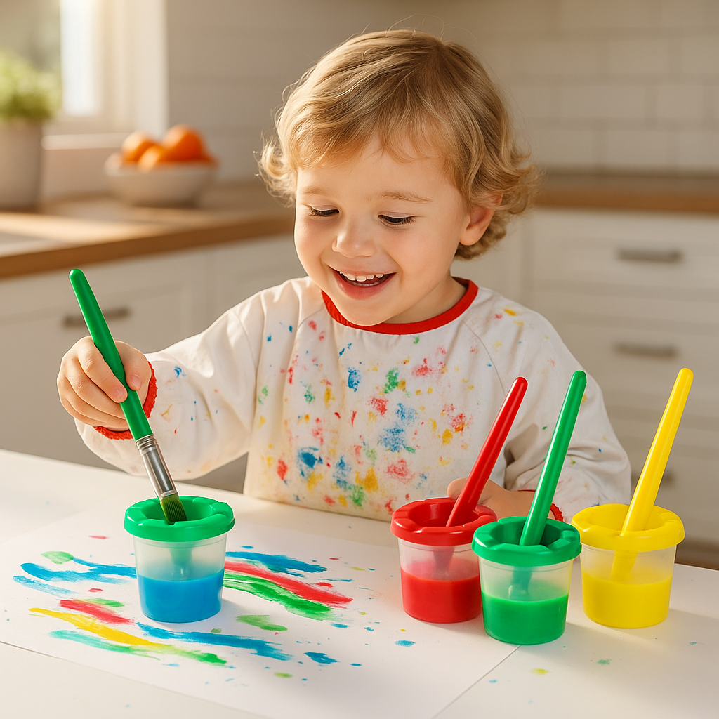 My son is only 16 months old and he just loves trying out new arts and crafts here at home. Even when he's trying, he can't spill the paint when it's in these cups and no one can deny how amazing not having to clean up that much paint, really feels. Thank you so a great product!