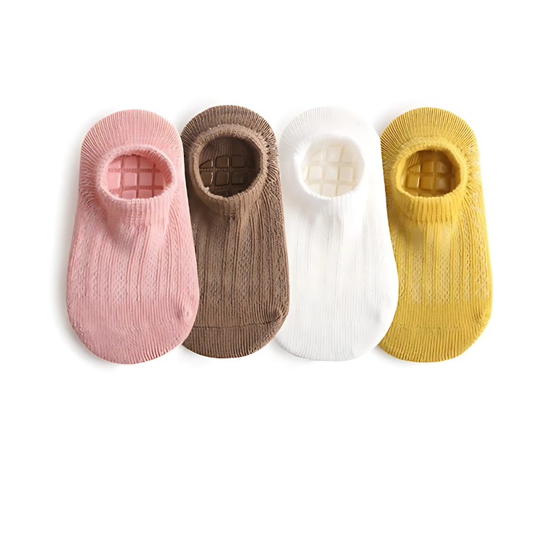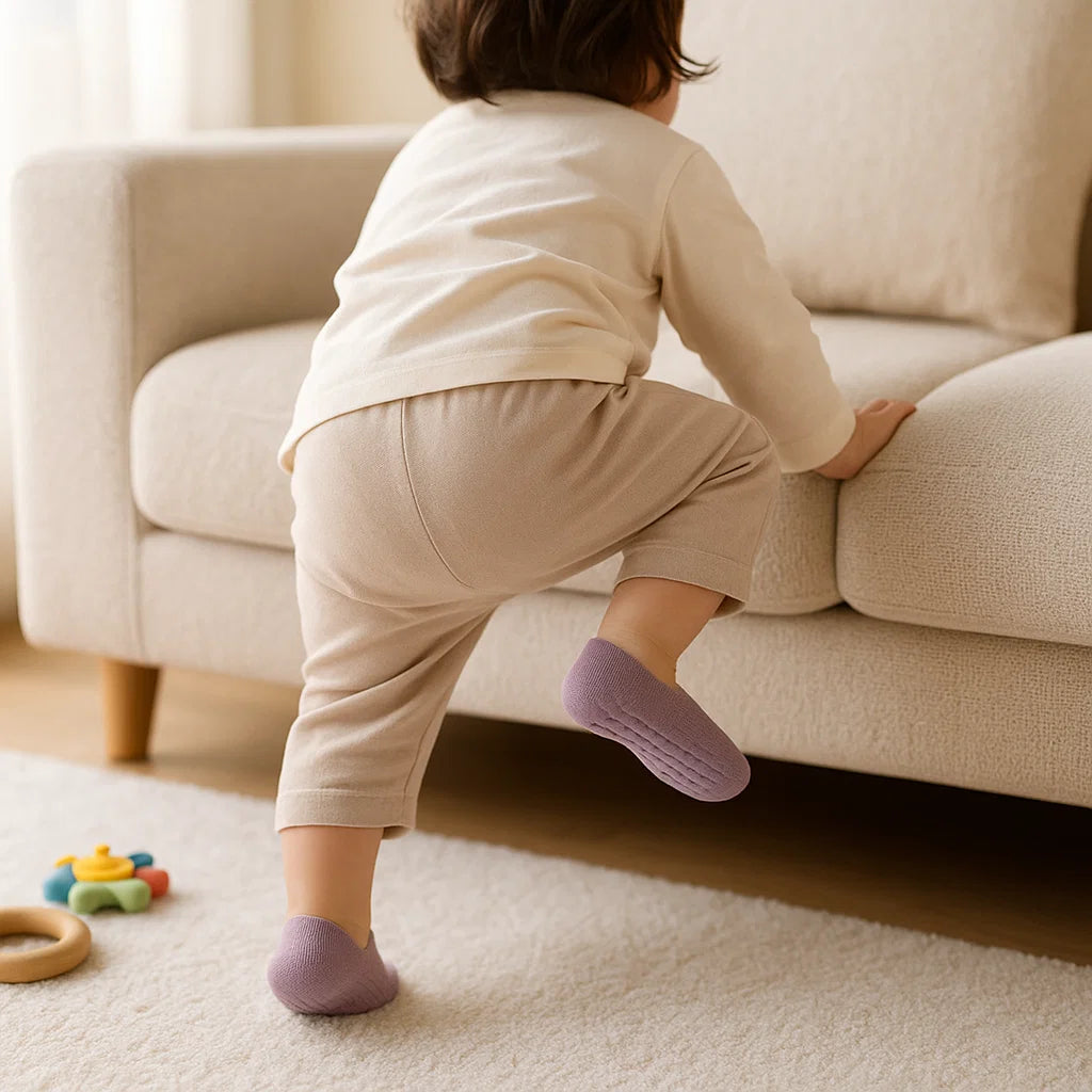 I was looking for a minimalist baby sock that wouldn’t slide off constantly, and these fit the bill. They have just enough grip to keep my toddler safe while walking indoors, and they don’t leave red marks around the ankle. We've washed them several times and they’ve held up beautifully.
