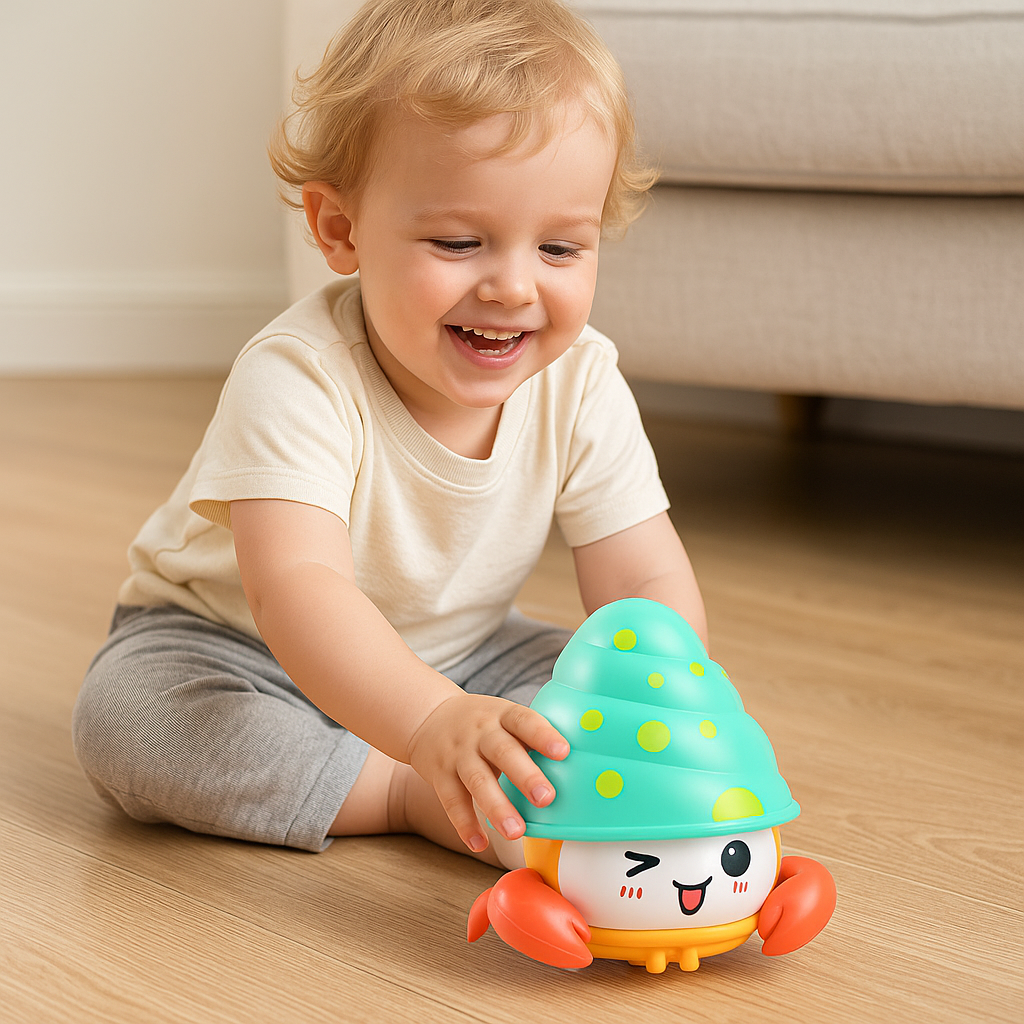 Ignite your child's creativity and enhance their motor skills with Crabbly, the interactive push & play crab toy - providing your young adventurer with the joy of limitless playtime thrills as they dash and discover new realms—all while fostering a passion for learning through imaginative adventures.