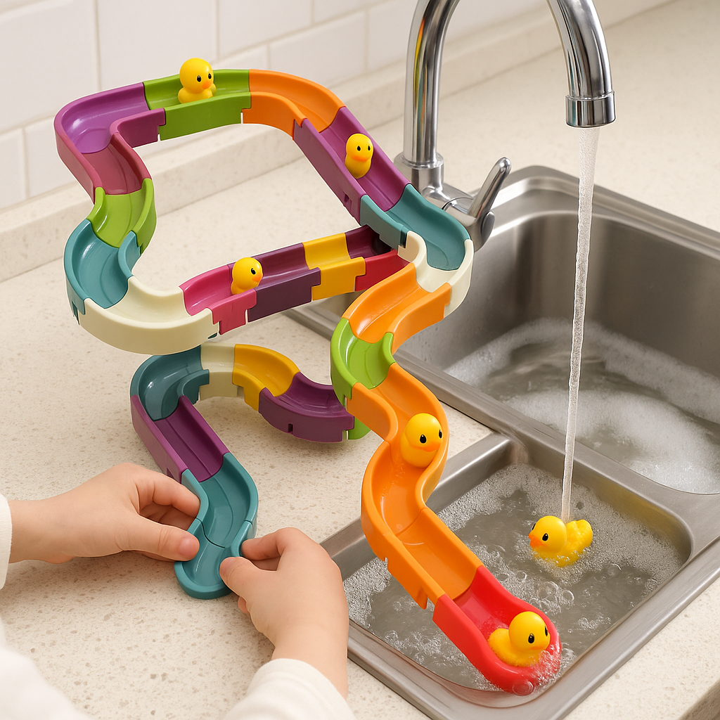 By building and modifying the waterslide, your little one can develop their hand-eye coordination and fine motor skills, all while having a blast in the bathtub.