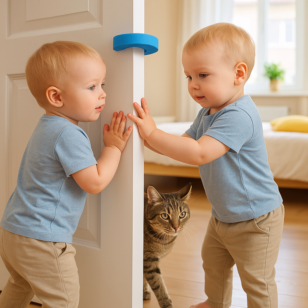 FoamGuard ensures a safe environment by stopping painful finger pinches, unintended lock-ins, and door slams with resilient EVA foam stoppers that conveniently attach to any door, safeguarding little hands while enabling pets to roam freely.