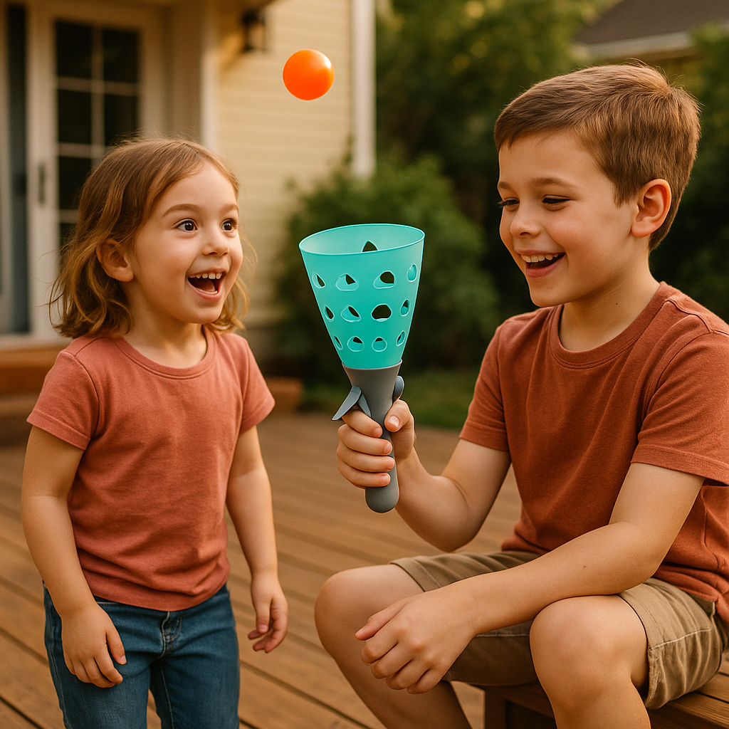 The game is super easy to play. Kids can play solo by holding the basket and catching the ball as it bounces. Or, for more excitement, they can play with friends or family. One player launches the ball, and the other catches it. It's simple, fast-paced, and incredibly fun. No complicated rules or setup needed!