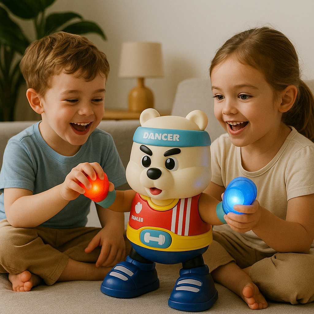 Infuse your child's day with joy, activity, and laughter through Groovify, the cheerful fitness bear that illuminates, dances to tunes, and encourages kids to remain engaged while enjoying countless moments of fun, a wonderful mix of playfulness, energy, and creativity for delightful and healthy playtime experiences.