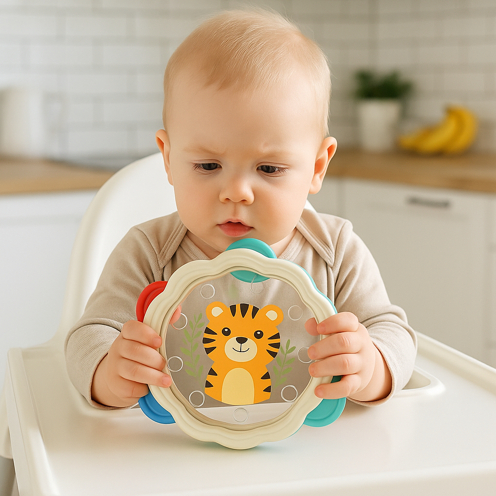 This charming tambourine is designed specifically for small hands. It’s light, easy to hold, and ready for action whenever your child is. Shake it, hit it, or roll it on the ground—it's crafted to inspire happiness, enhance coordination, and keep infants joyfully occupied.