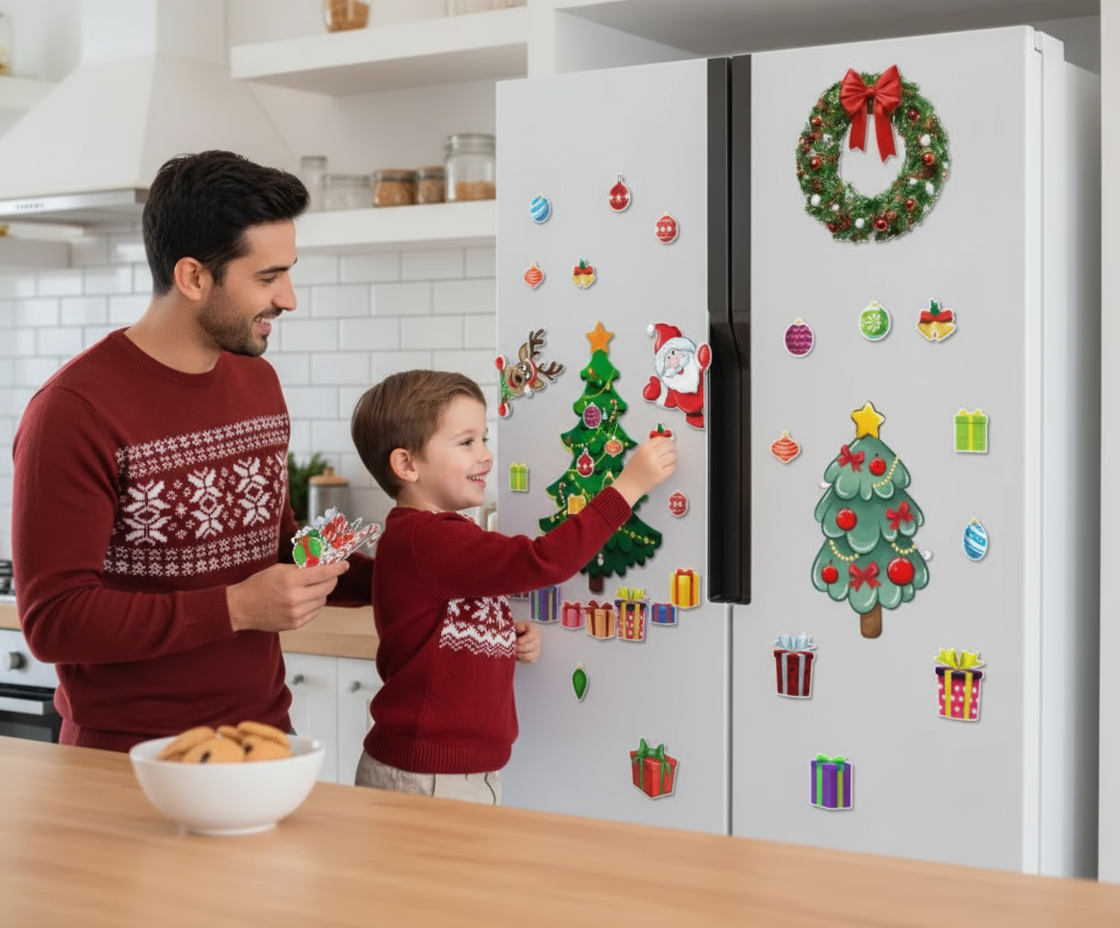 Elevate your kitchen into a delightful holiday paradise with JollyMagnet, the cheerful fridge magnet set filled with Santa, presents, reindeer, and more, crafted to evoke joy, ignite creativity, and enhance your family reunions or considerate gifting moments this festive season.