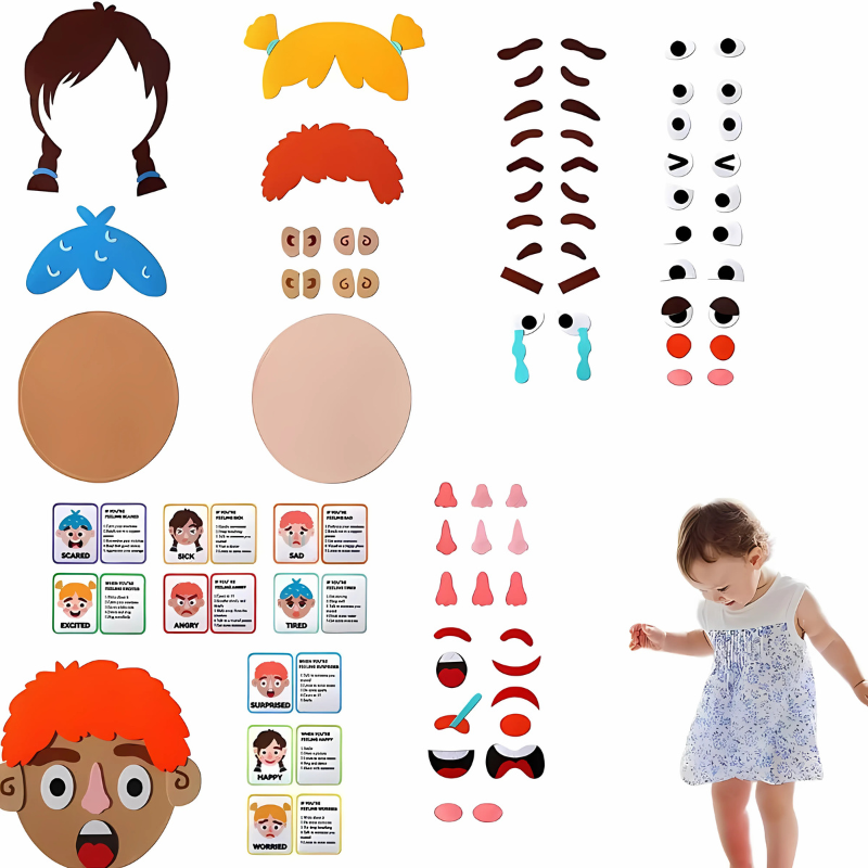 This felt face making kit is both educational and fun! My child loves learning about emotions while creating funny expressions.