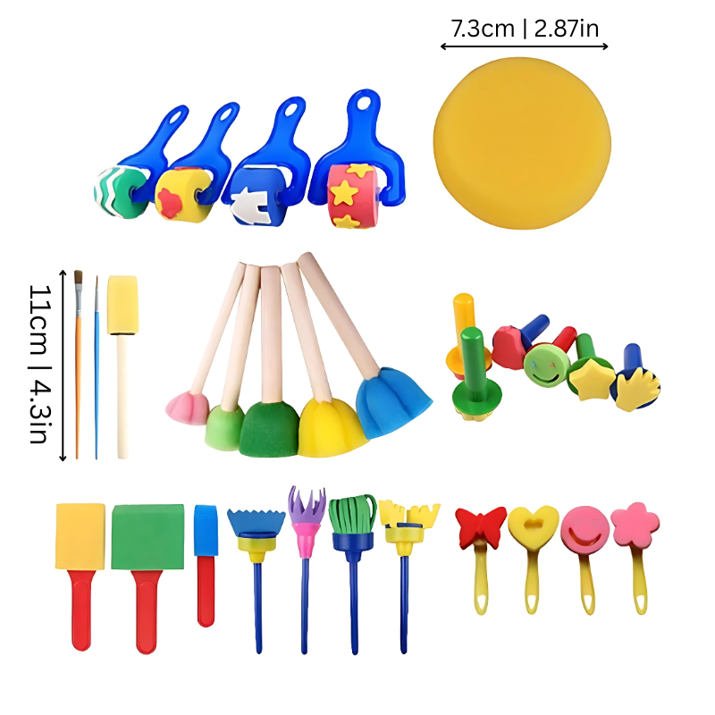 - Set Contains: 30pcs; Brushes, Sponges, Rolls & Stamps