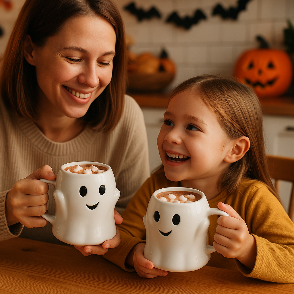Our Phantomug mug features an adorable ghost motif that captures the Halloween spirit in a subtle way. Its endearing design delights everyone with each sip, making it a favorite for both children and adults. Imagine a snug autumn morning, your go-to beverage, and this delightful mug warming your hands—sheer joy!