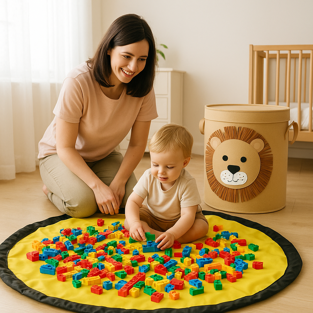 Imagine your child's delight as they dive into a world of creative play on the spacious, comfy mat that unfolds from the Playtote. No more stepping on painful toy blocks or hunting for lost toys under the couch.