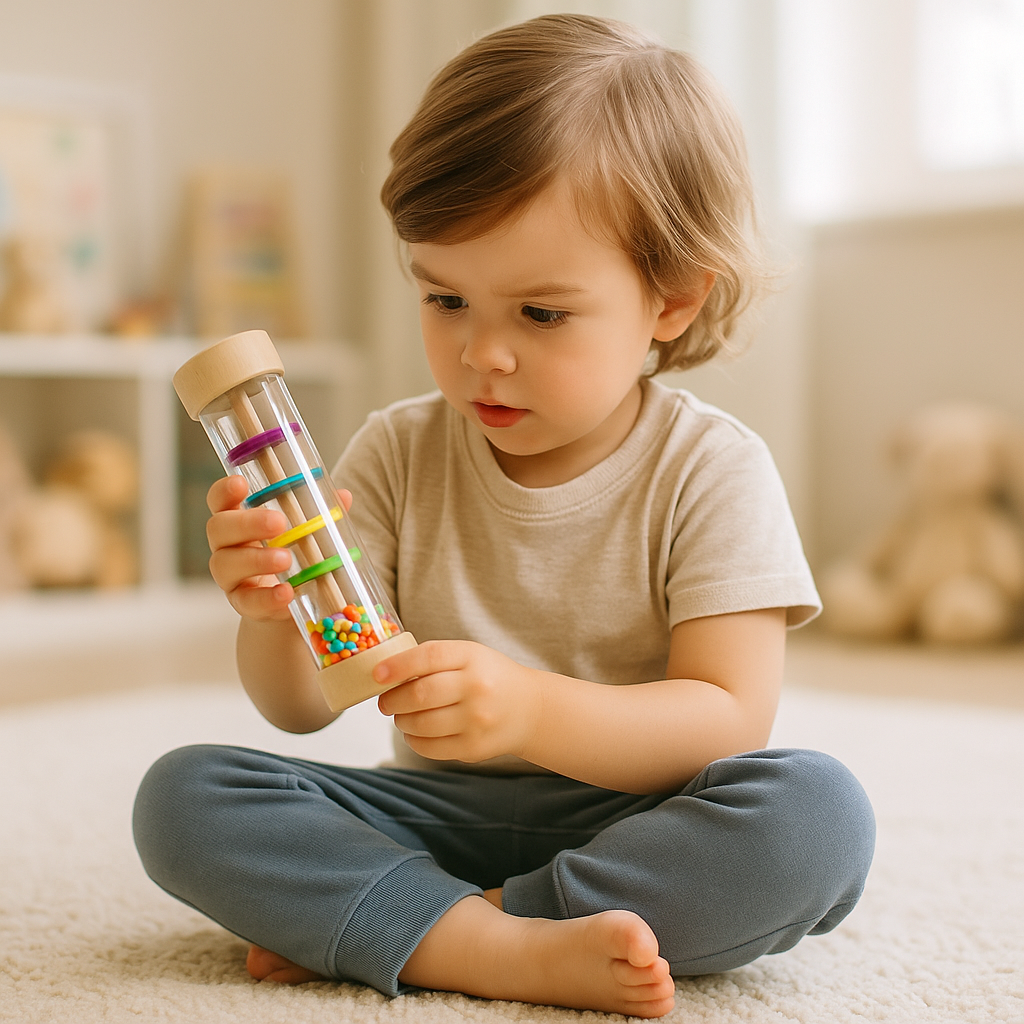 I was looking for a Montessori style toy and this fits the bill perfectly. It’s simple, beautiful, and encourages exploration without flashing lights or loud music. Honestly, I kind of want one for myself because the rain sound is so peaceful.