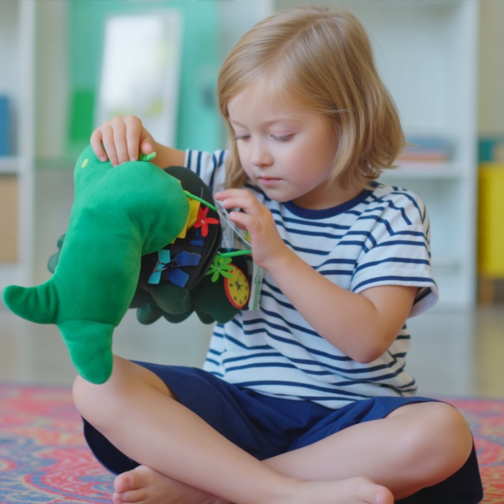 Imagine your child stepping into the shoes of a daring dinosaur Questiva. Every latch they flip, every wheel they turn, every color they touch leads to a new discovery. And guess what? While they're having a blast, they're also developing their fine motor skills, learning about cause and effect, and engaging their senses. It's learning disguised as fun - the best kind!