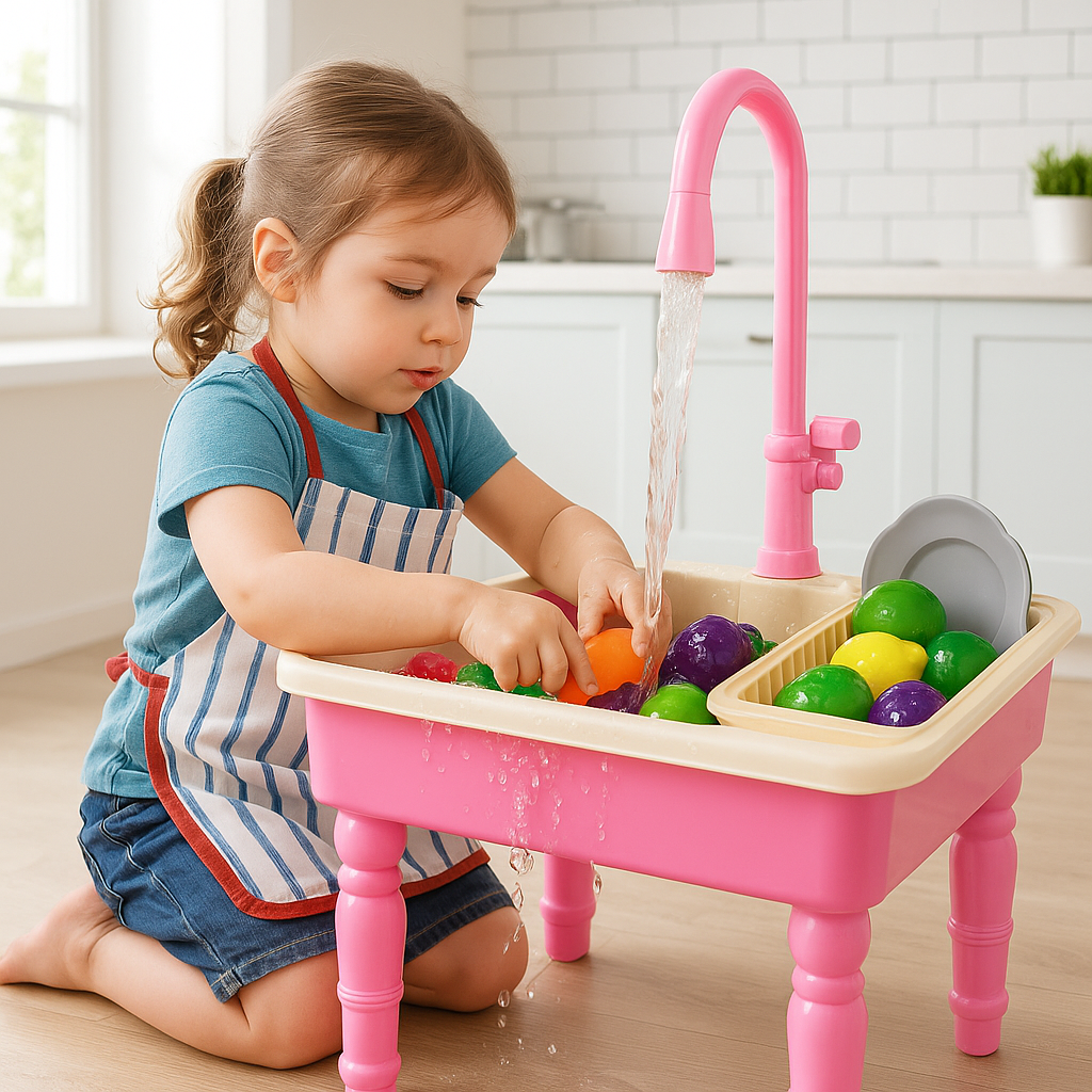 Sinkle introduces toddlers to essential kitchen skills in an entertaining manner. They'll learn how to clean dishes, wash fruits, and even understand kitchen safety. All this is made possible by an innovative automatic water recycling feature that keeps the excitement alive without wasting resources. It's purposeful play!