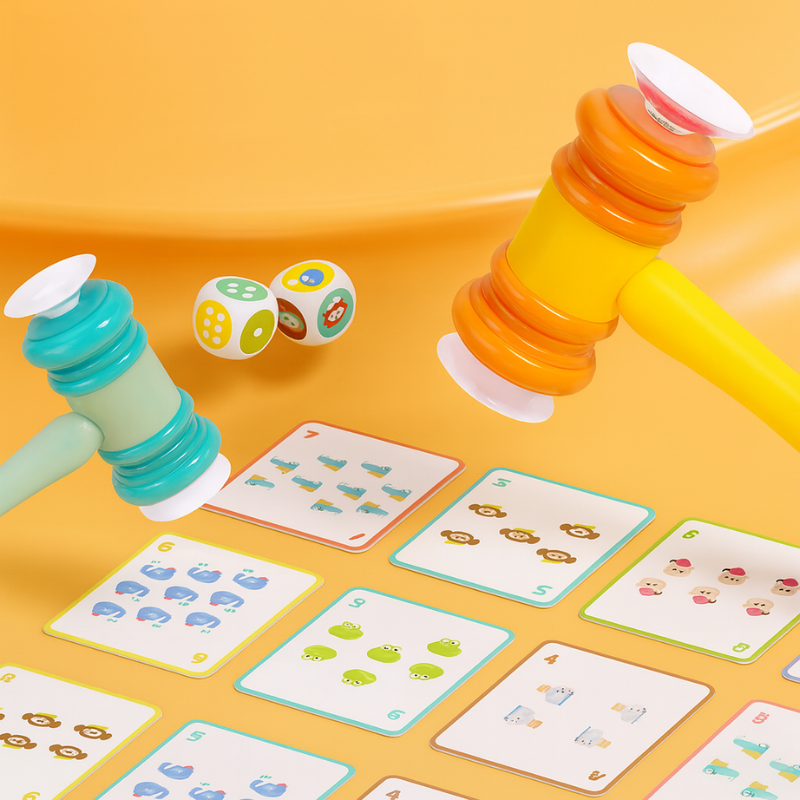 Smashio transcends mere equation solving – it aids children in their overall development. While engaged in play, they are simultaneously enhancing focus, fine motor skills, and critical thinking. The energetic pace encourages rapid thinking, and the hammer strikes and card collections boost hand-eye coordination. Additionally, they cultivate essential social abilities such as patience, turn-taking, and collaboration.