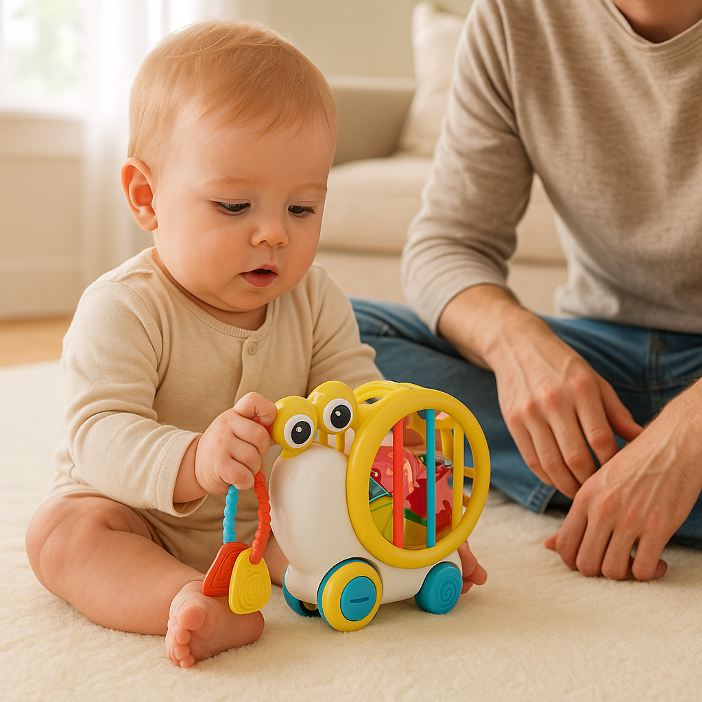 Snailix is designed for dynamic play without the need for batteries. The inertia slide car feature encourages your baby to push and chase, helping to coordinate their limbs while stimulating their minds. Its design captures and holds your baby's attention, prompting them to crawl and explore, which is great for physical development and building self-confidence.