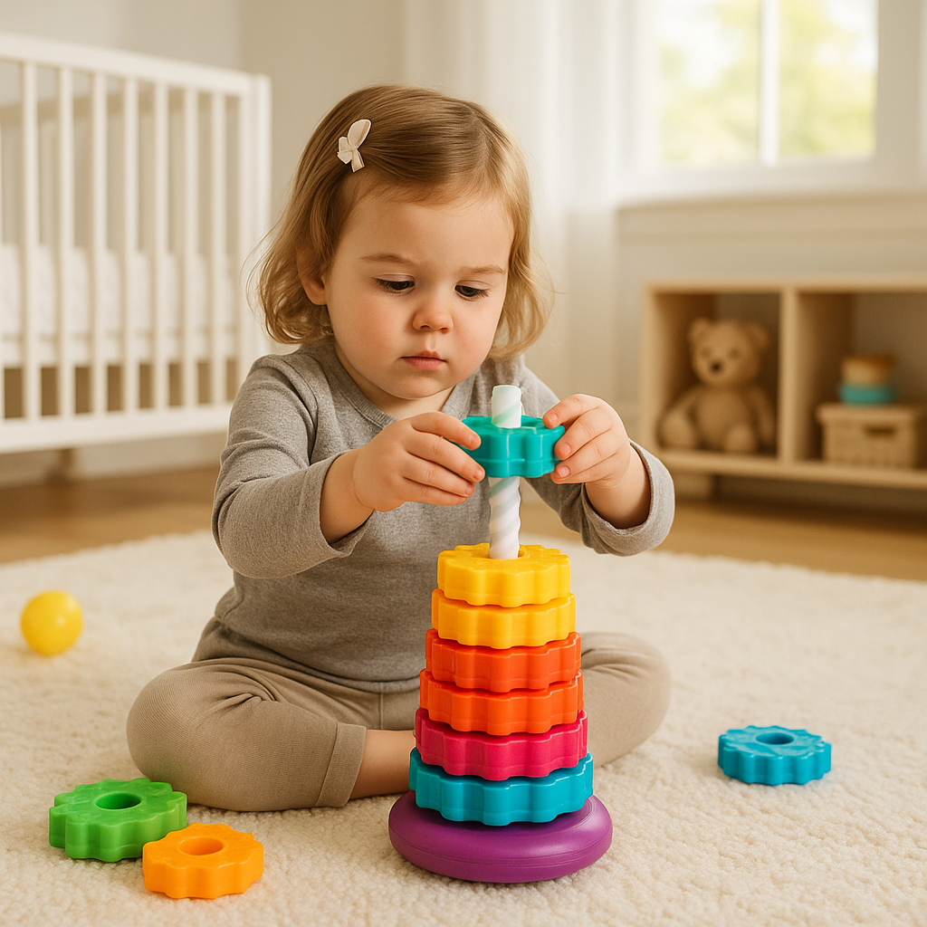 Every spin and twist of the Spinara adds a splash of color to their day, keeping them engaged and excited. This isn't just about fun, though. As your child stacks the colorful discs, they're also developing their fine motor skills. Your kiddo is growing, learning, and most importantly, having a blast.