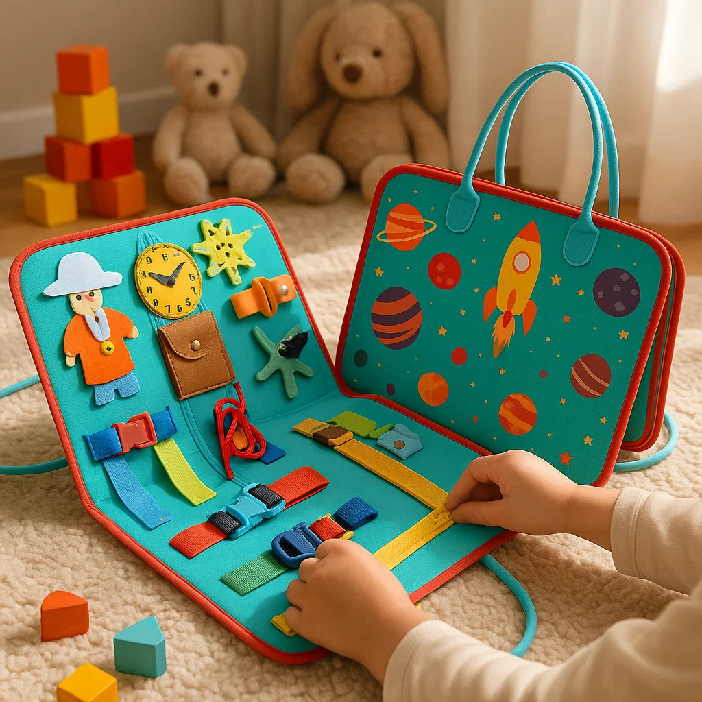 Touchara - Montessori Sensory Board comes in a compact felt tool box, making it the perfect portable companion for all of your little one's sensory needs. Inside, you'll find a variety of sensory adventures that will capture your little one's imagination and keep them engaged for hours on end.