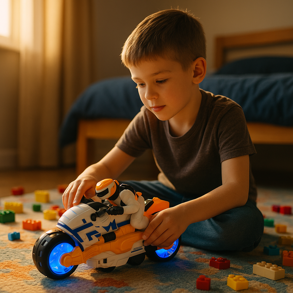 Not only is Twizzlea a blast to play with, but it's also a powerhouse for developmental benefits. As your child maneuvers the stunt bike, they enhance their hand-eye coordination, sharpen their logic, and expand their imagination. Each session with Twizzlea is a step towards building essential skills through play, making it a smart choice for parents focused on developmental growth.