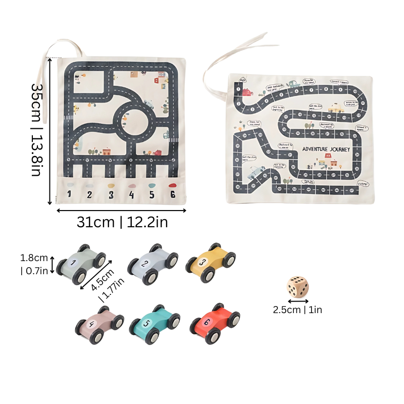 - Set Includes: Road Map + 6x Cars & 1x Dice
