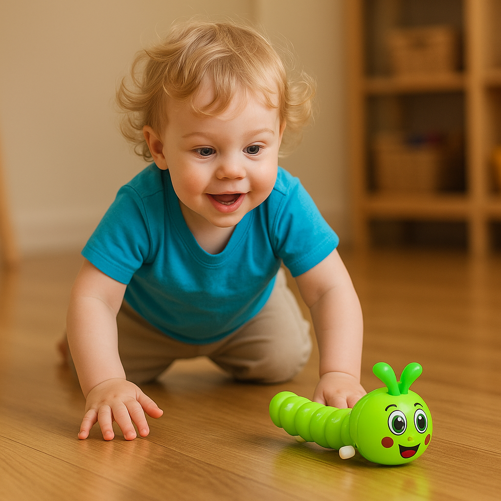 My toddler is absolutely obsessed with these crawling toys! The bright colors catch his attention instantly, and he loves chasing them around the living room. The winding mechanism is easy to use, though I wish it crawled a bit longer per wind.