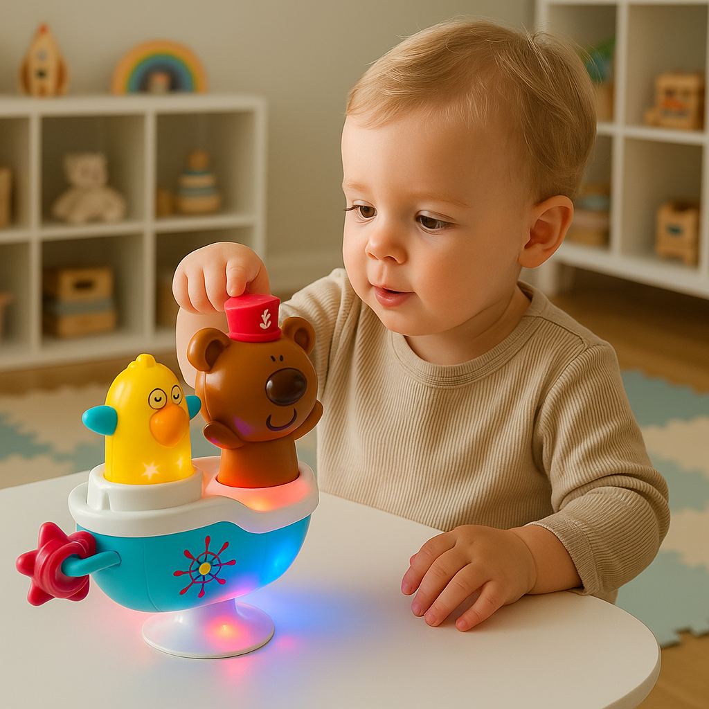 Ignite your child's imagination during playtime with Wobblio—an animated musical vessel that bounces, illuminates, and features dancing animals, transforming any surface into an aquatic escapade filled with sound, movement, and infinite joy.